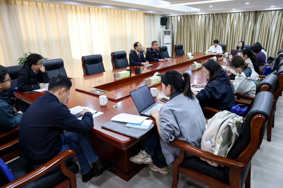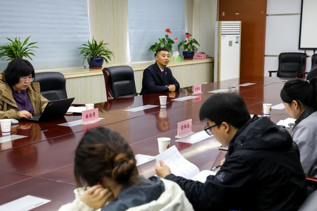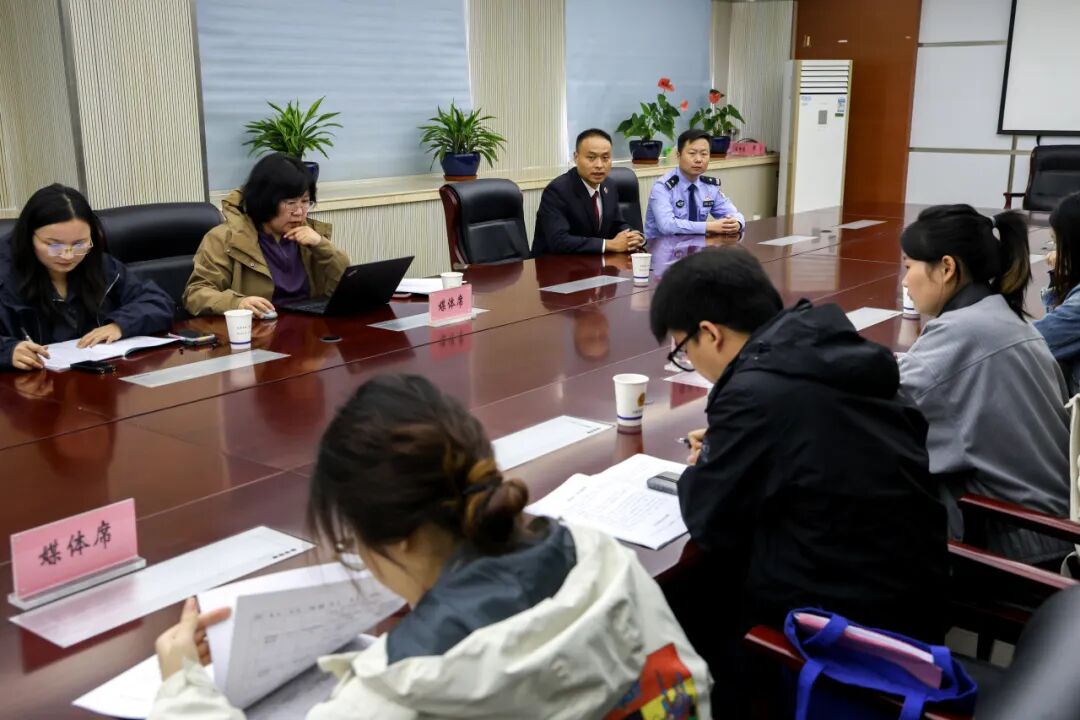 图为白湖检察院副检察长石申东向采访团介绍检监协作化解狱内矛盾方面的工作情况。