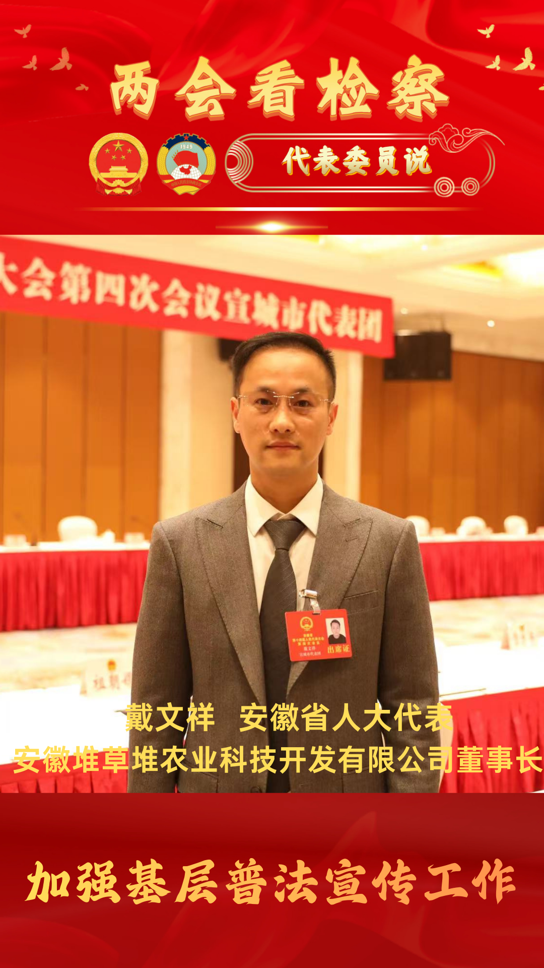作为来自基层的民营企业家代表,我对于全省检察工作关注的地方有很多,比如向企业普法宣讲、加强法律保障等工作。希望未来检察机关能进一步深化普法宣传进基层的力度,依托法治讲座等形式,为我们农户、商户等经营主体常态化开展普法宣讲活动,精准提供检察普法产品。