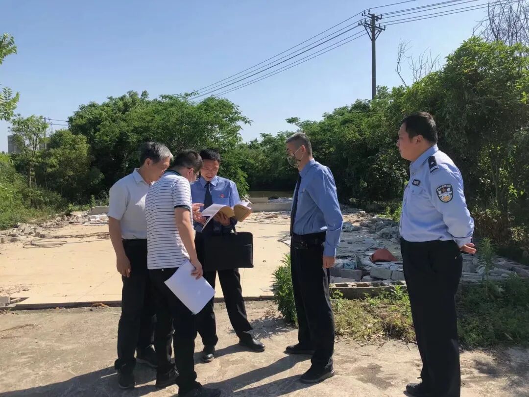 ▲安徽省芜湖市弋江区检察院检察官与自然资源行政执法人员共同勘查非法占用农用地现场。