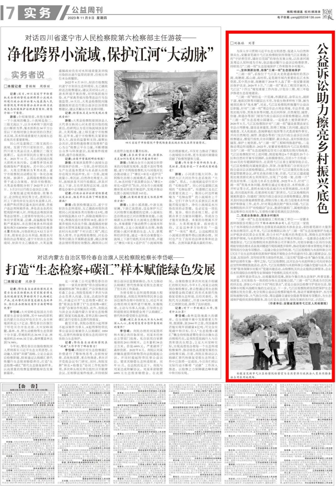 三是实现“党建+业务”融合发展。在长江保护法颁布实施一周年之际,弋江区检察院、区河长办与水韵环保公司共同举办普法宣传和增殖放流活动。此外,弋江区检察院与水韵环保公司融合党建与业务,合作开展“服务保障乡村振兴”党建共建活动,由检察机关向企业提供法律服务,企业则在水环境综合治理等专业领域给予检察机关技术支持。