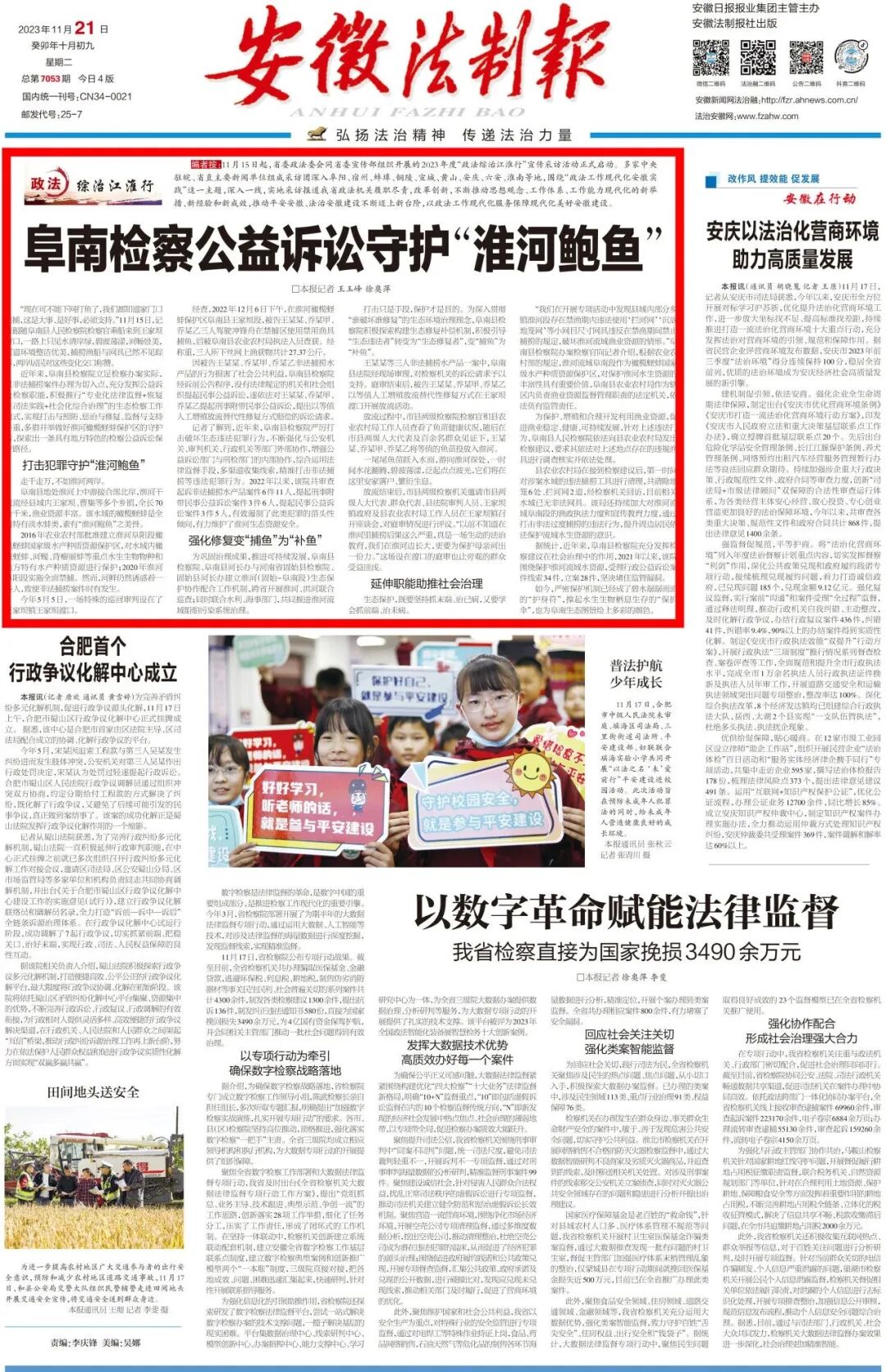 2023年11月21日《安徽法制报》头版头条