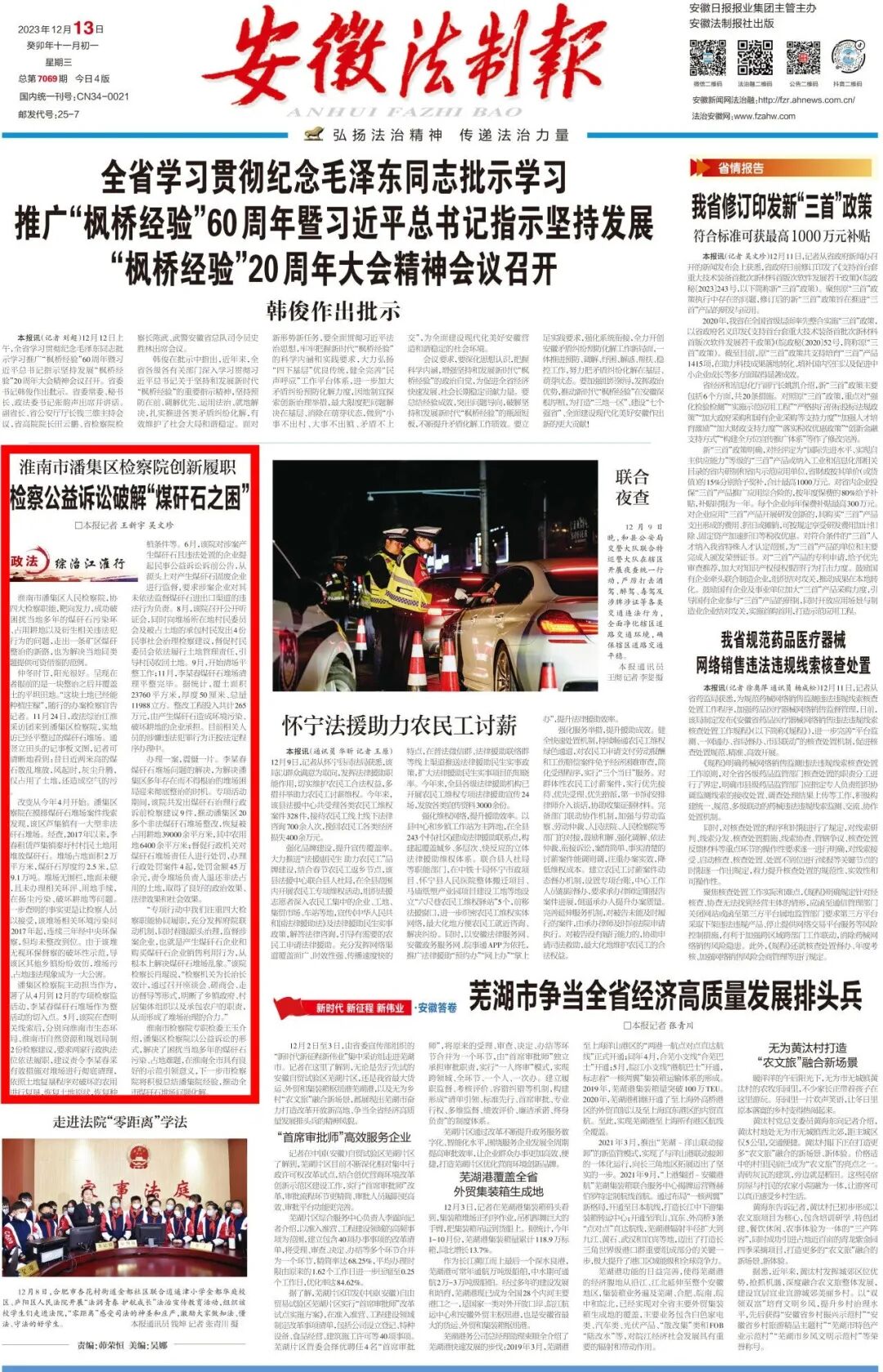 2023年12月13日《安徽法制报》头版