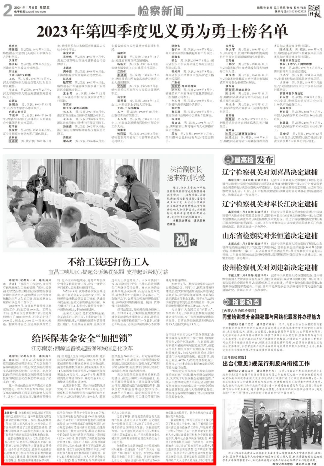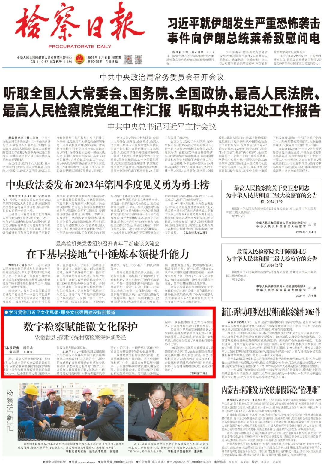 2024年1月5日《检察日报》头版