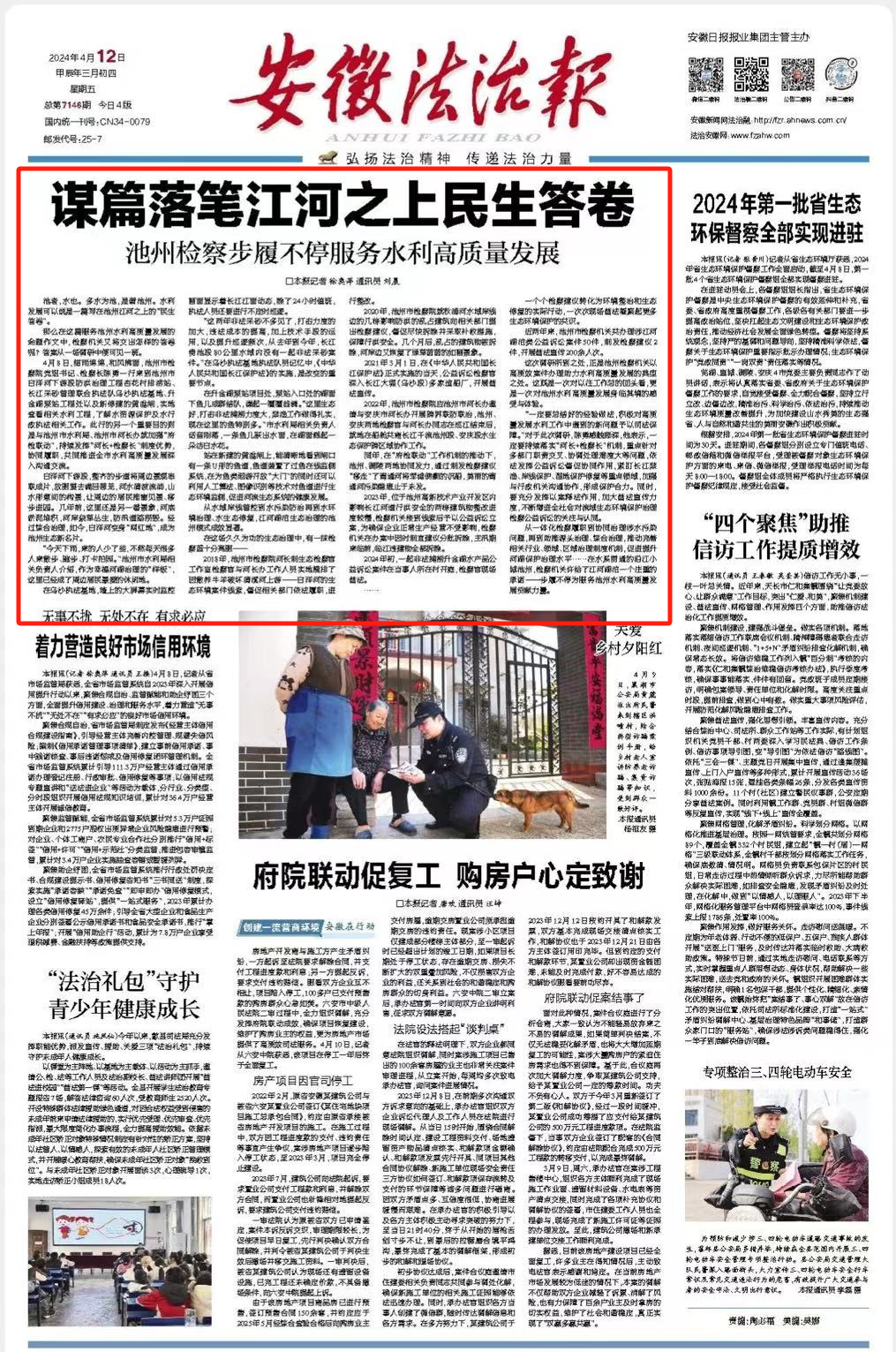 2024年4月12日《安徽法治报》头版头条
