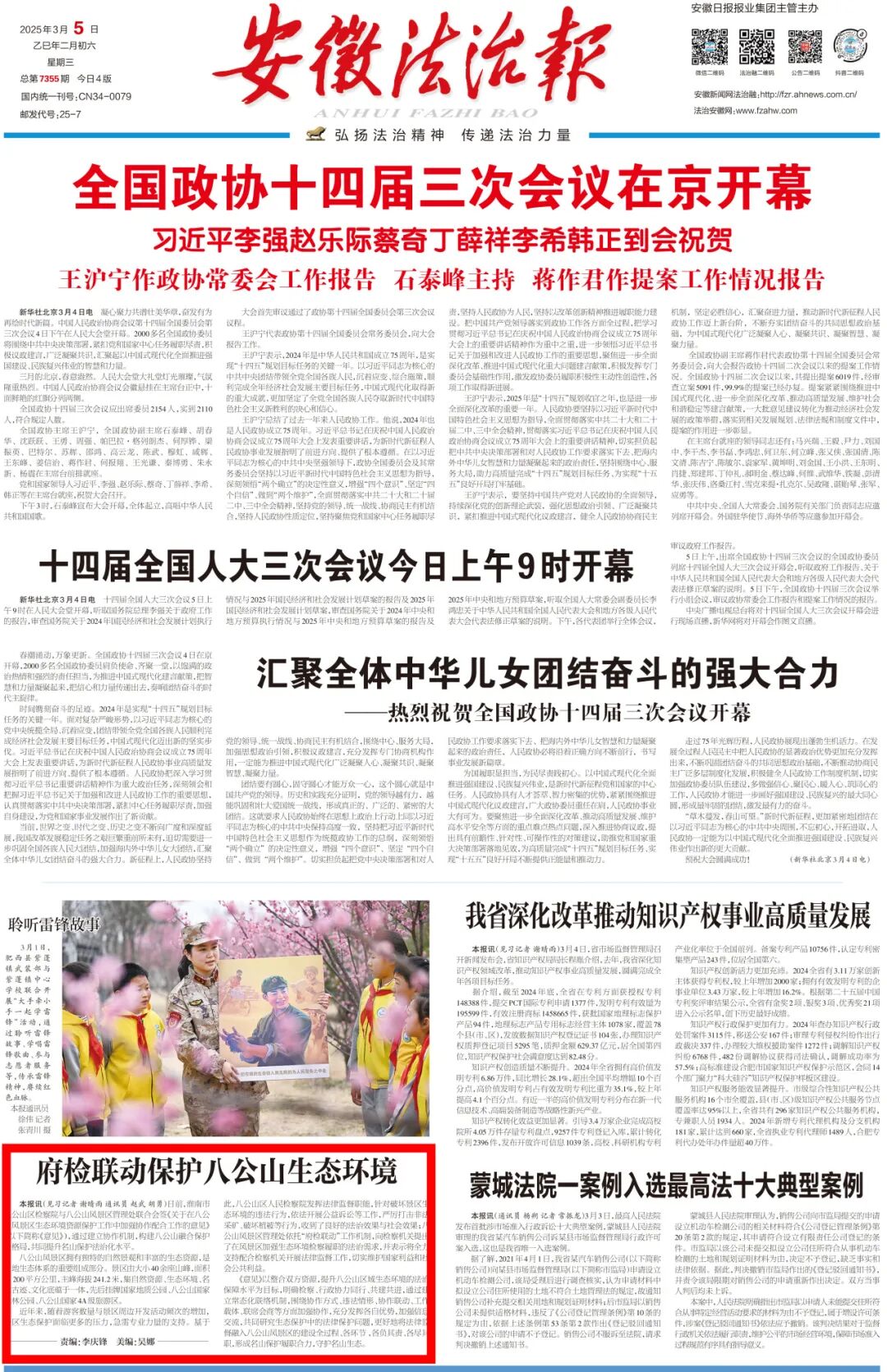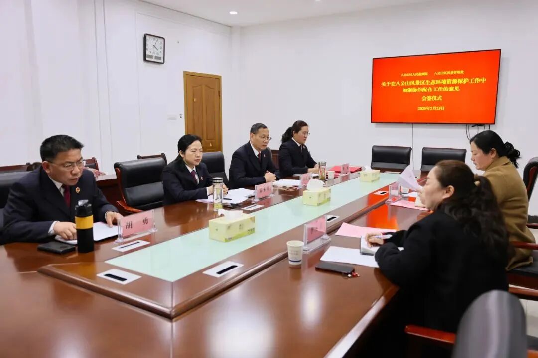 淮南市八公山区检察院与八公山风景区管理处联合会签《关于在八公山风景区生态环境资源保护工作中加强协作配合工作的意见》。