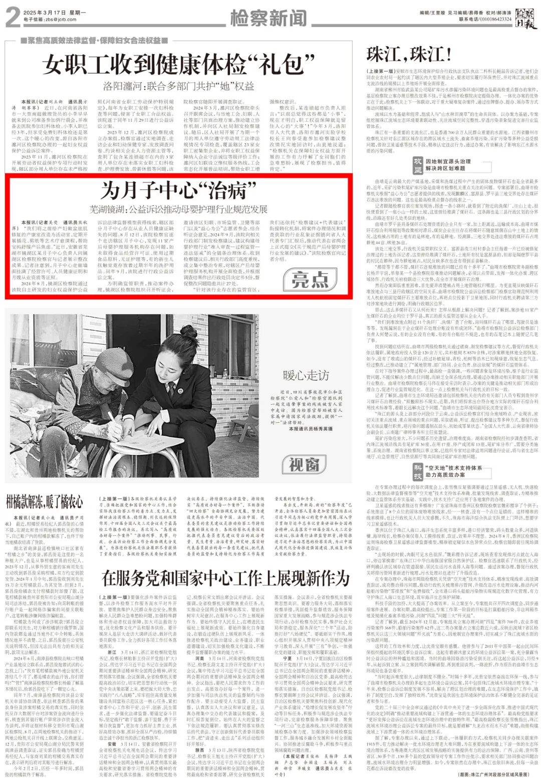 “针对该行业存在的监管盲区,我们还依托‘检察建议+代表建议’衔接转化机制,将案件办理情况和调查获取的行业乱象证据链向省人大代表专门汇报后,推动代表在省两会上正式提交《关于规范产后母婴护理行业发展的建议》。”该院检察官向记者介绍。
