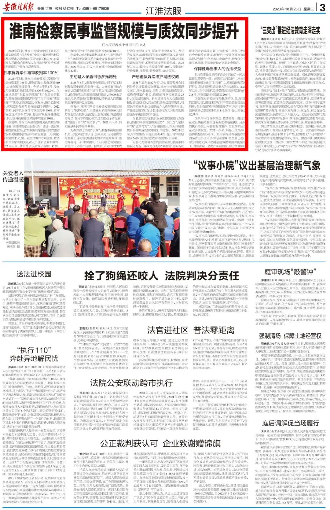 2022年以来,淮南市两级检察机关认真贯彻落实最高检“四大检察”全面协调发展的相关部署与要求,持续加大民事检察工作力度,有效保障人民群众合法权益,为当地经济社会高质量发展提供了强有力司法保障。