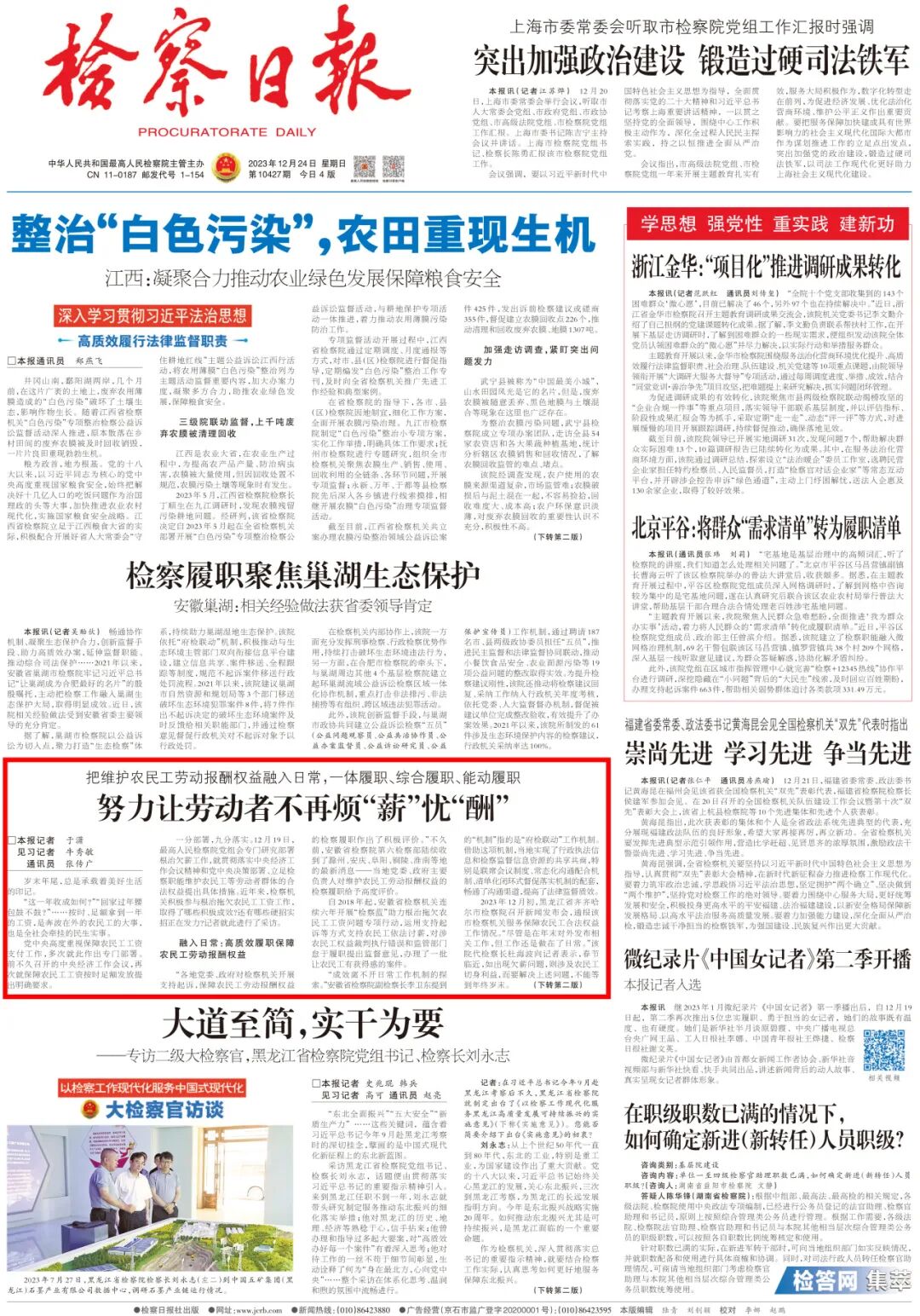 自2022年开始,最高检还部署开展“全面深化行政检察监督依法护航民生民利”专项活动并延长一年,指导各地开展保障劳动者合法权益小专项活动。