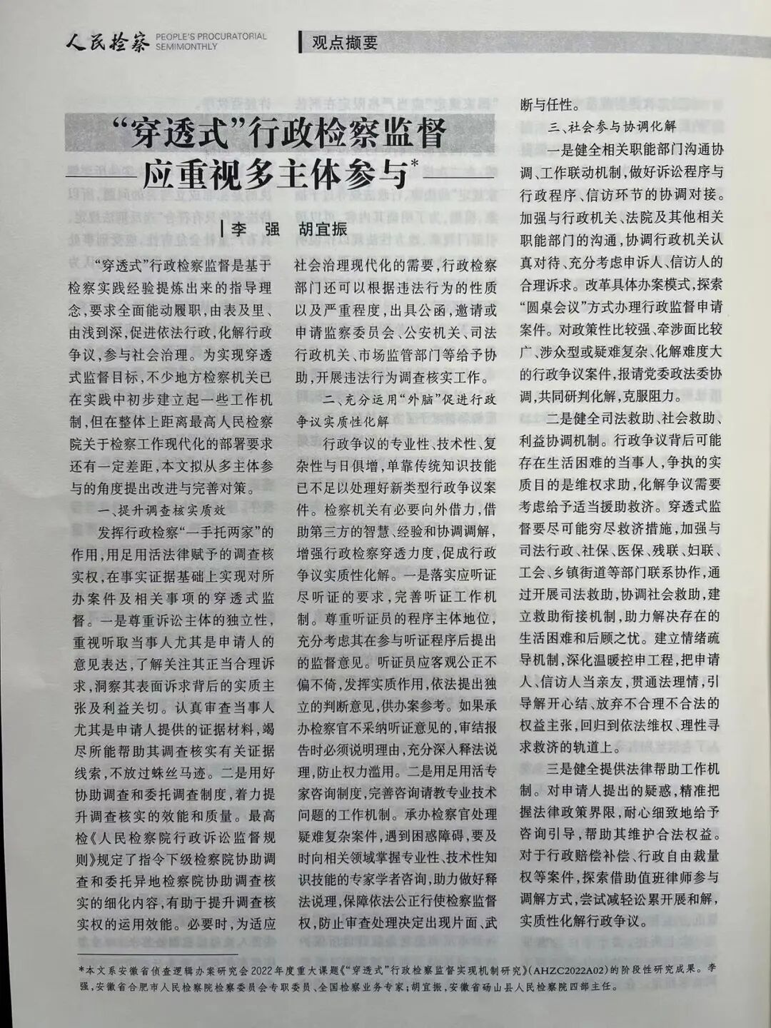 作者:李强,安徽省合肥市人民检察院检察委员会专职委员、全国检察业务专家;胡宜振,安徽省砀山县人民检察院四部主任