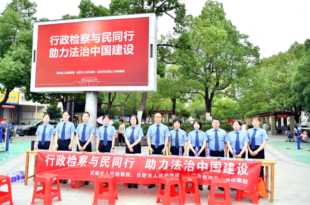 7月9日,安徽省检察院、合肥市检察院和包河区检察院行政检察部门联合开展以“行政检察与民同行,助力法治中国建设”为主题的新时代检察宣传周普法进社区活动。