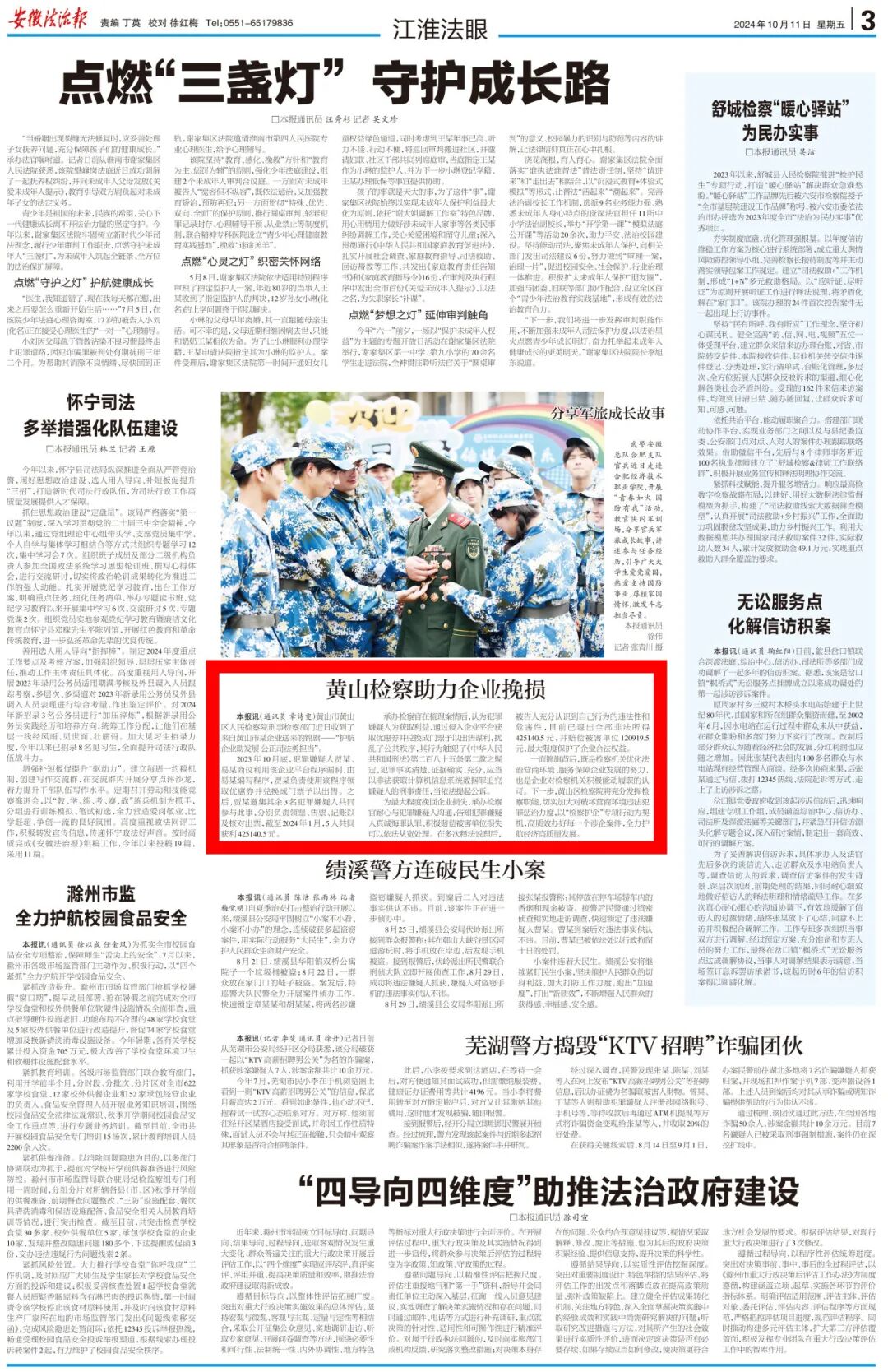 一面锦旗背后,既是检察机关优化法治营商环境、服务保障企业发展的努力,也是企业对检察机关积极能动履职的认可。下一步,黄山区检察院将充分发挥检察职能,切实加大对破坏营商环境违法犯罪惩治力度,以“检察护企”专项行动为契机,高质效办好每一个涉企案件,全力护航经济高质量发展。