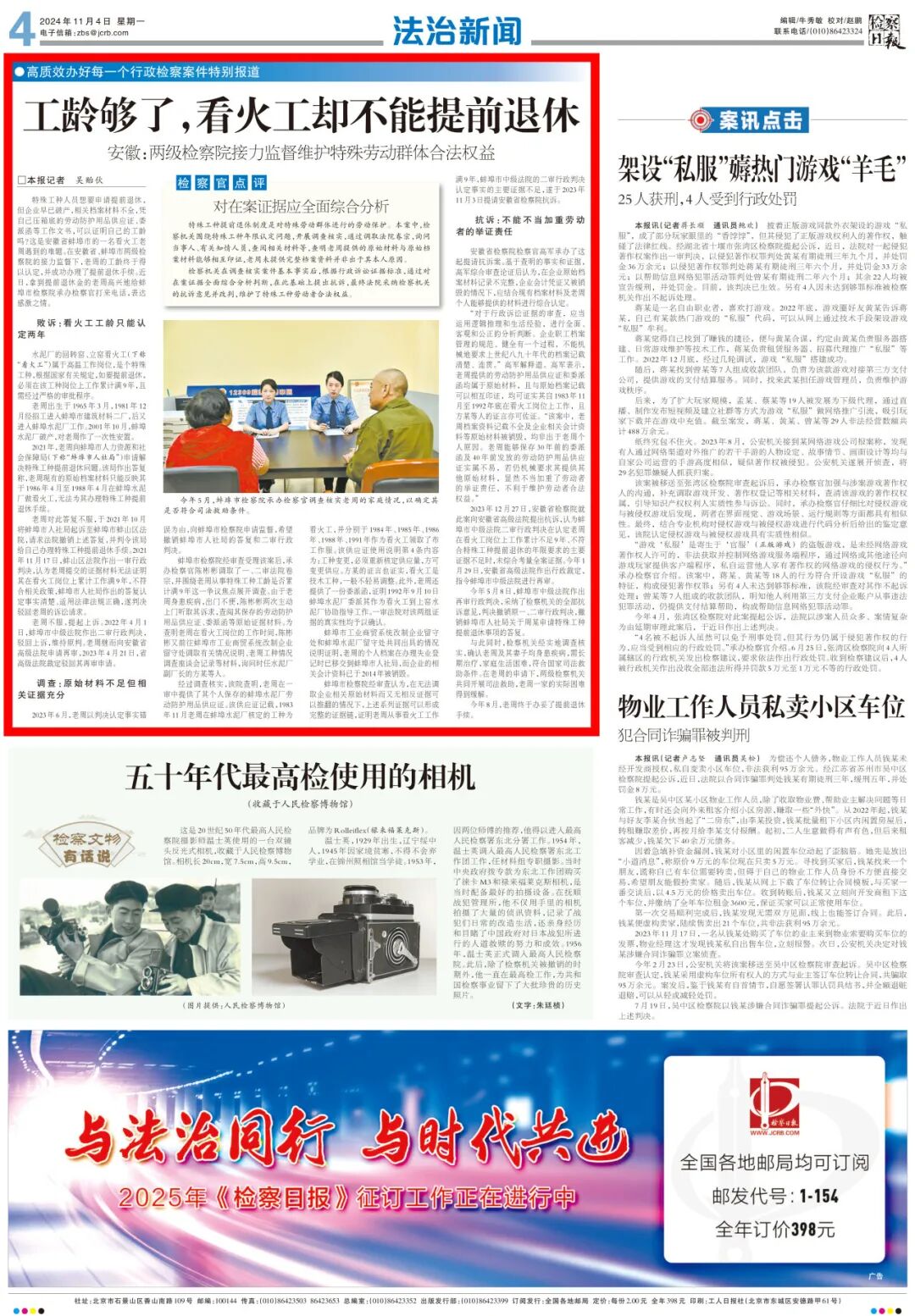 安徽:两级检察院接力监督维护特殊劳动群体合法权益
