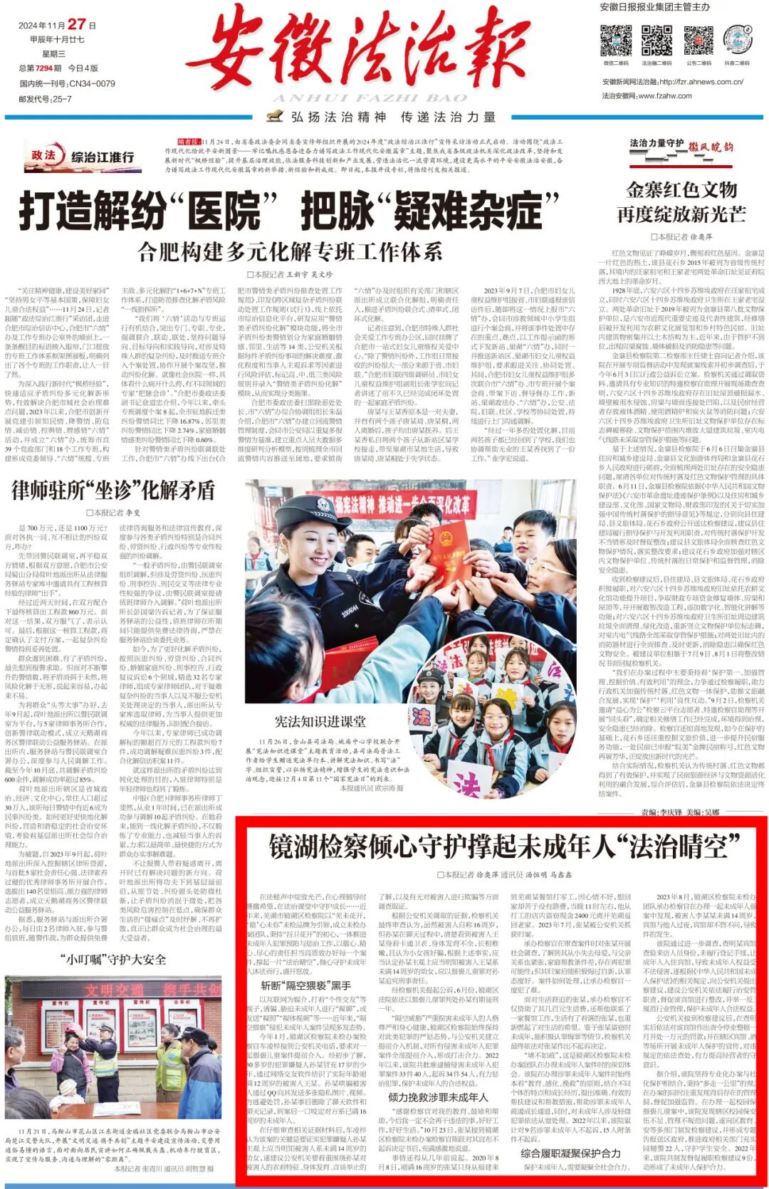 在法槌声中绽放光芒,在心理辅导时播撒希望,在法治课堂中守护成长……近年来,芜湖市镜湖区检察院以“芜未花开,‘镜’心未你”未检品牌为引领,成立未检办案团队,秉持“吾卫花开”的初心,一体推进未成年人犯罪预防与惩治工作,以敬心、精心、尽心的责任担当高质效办好每一个案件,撑起一片“法治晴空”,倾心守护未成年人沐法而行,盛开怒放。