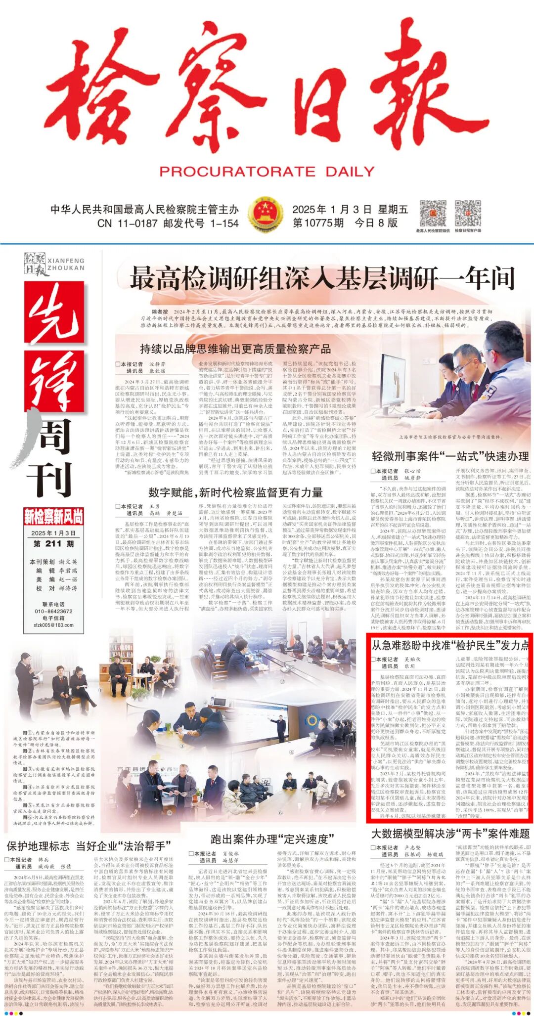 【编者按】 2024年2月至11月,最高人民检察院检察长应勇率最高检调研组,深入河北、内蒙古、安徽、江苏等地检察机关走访调研,按照学习贯彻习近平新时代中国特色社会主义思想主题教育和党中央大兴调查研究的部署要求,聚焦检察主责主业,持续加强基层建设,不断提升法律监督质效,推动新征程上检察工作高质量发展。本期《先锋周刊》五、八版带您重走这些地方,看看那里的基层检察院是如何锻长板、补短板、强弱项的。
