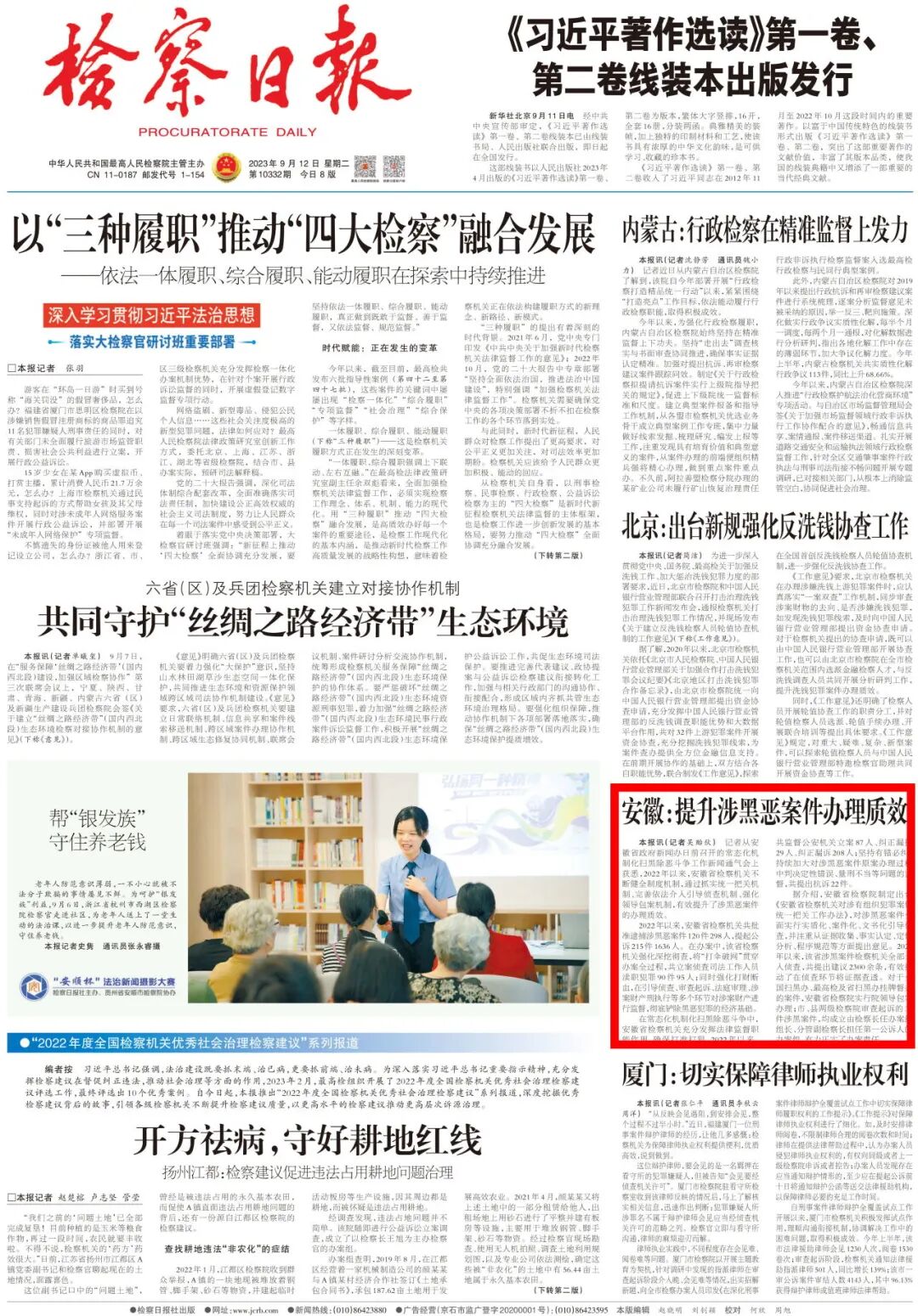 2023年9月12日《检察日报》头版