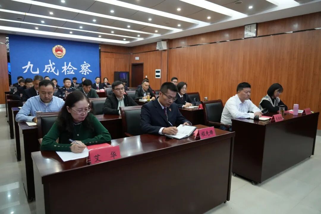 安徽省检察院巡察组副组长张红萍,巡察组全体成员以及九成坂检察院全体干警、部分退休干部参加会议。