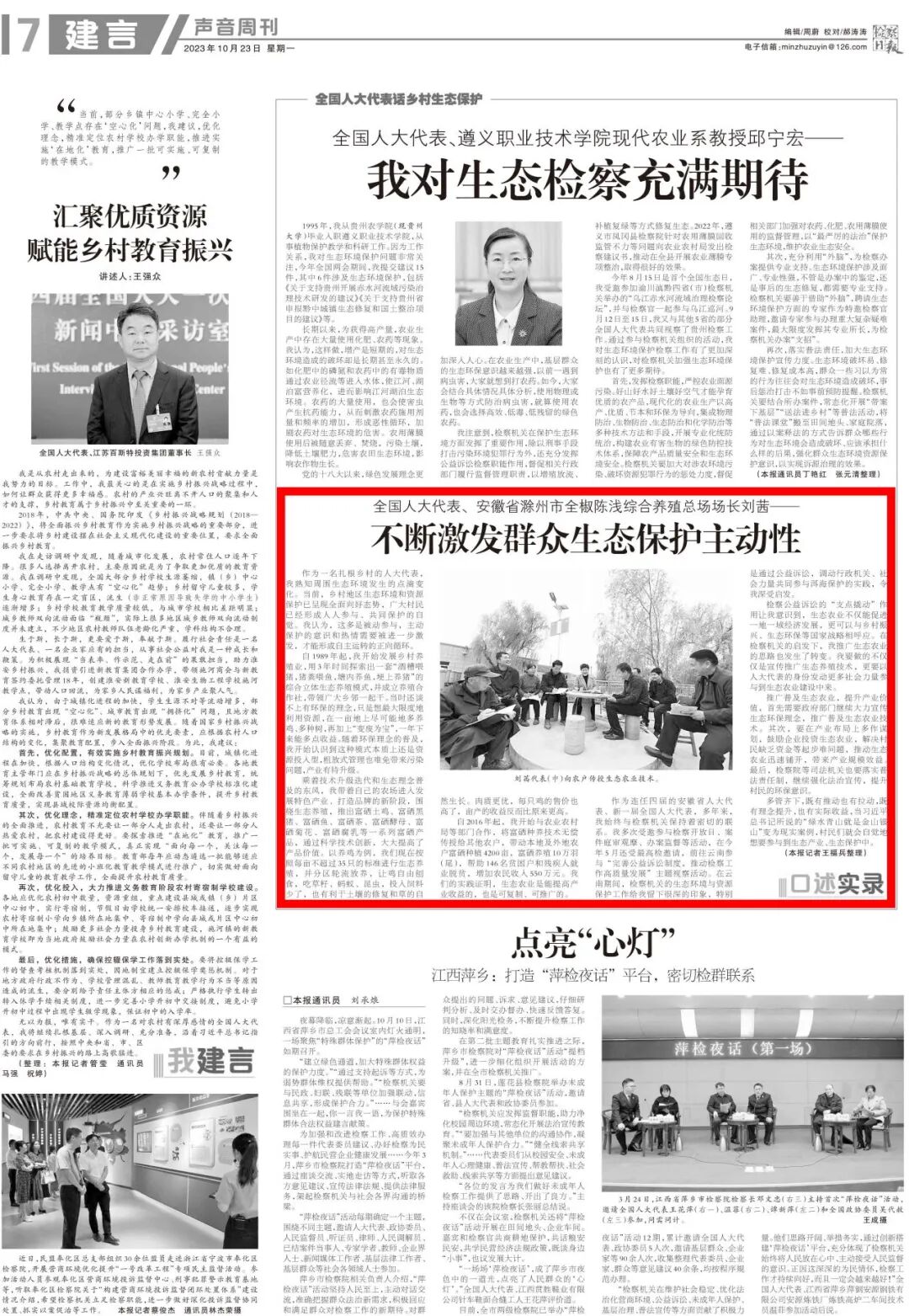 检察公益诉讼的“支点撬动”作用让我意识到,生态农业不仅能促进一地一域经济发展,更可以与乡村振兴、生态环保等国家战略相呼应。在检察机关的启发下,我推广生态农业的思路也发生了转变。我要做的不仅仅是宣传推广生态养殖技术,更要以人大代表的身份发动更多社会力量参与到生态农业建设中来。
