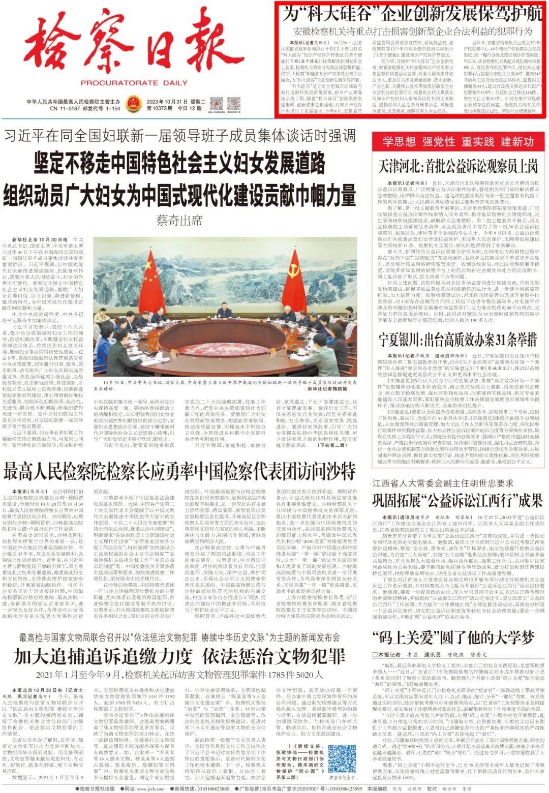 据介绍,为保护“科大硅谷”企业创新发展,安徽省检察机关将加强知识产权刑事立案监督和侦查活动监督,对重大疑难案件依法介入,重点打击涉及原始创新、技术创新、产业创新、关键核心技术等损害创新型企业合法利益的犯罪行为。检察机关将认真落实向知识产权权利人告知诉讼权利和义务制度,提倡权利人适度参与刑事诉讼,积极提供证据、发表意见,保障权利人合法权益。