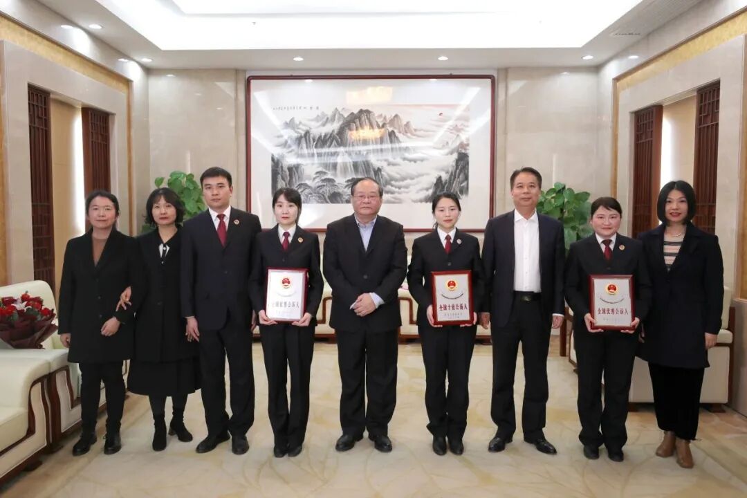 ▲安徽省检察院党组书记、检察长陈武接见载誉归来的第八届全国检察机关十佳公诉人