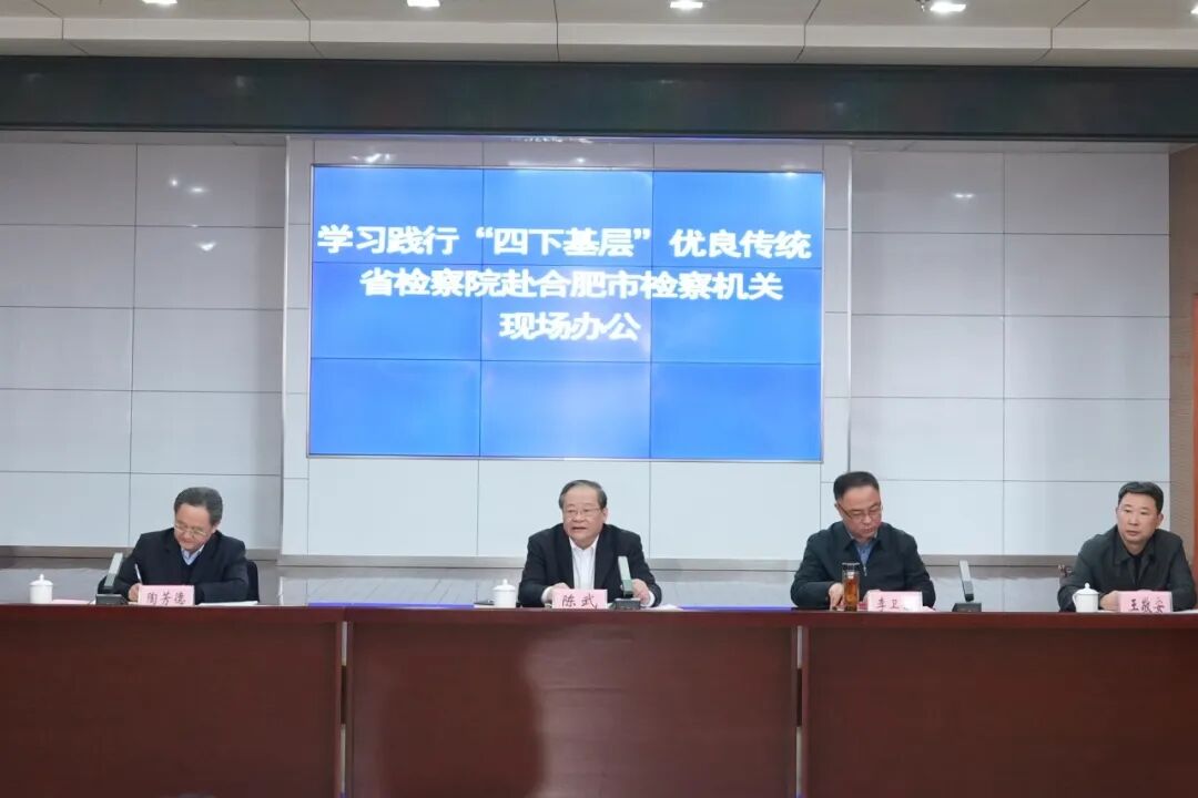 12月28日下午,省检察院党组学习践行“四下基层”优良传统,赴合肥市瑶海区检察院现场办公。省检察院党组书记、检察长陈武主持会议并讲话。他强调,反对空谈、强调实干,是我们党的优良传统,要进一步加强省检察院党组对合肥检察工作的具体指导和大力支持,提高办事效率,用心用情用力为基层解难题办实事,推动各项检察工作高质量发展,更好服务经济社会高质量发展。