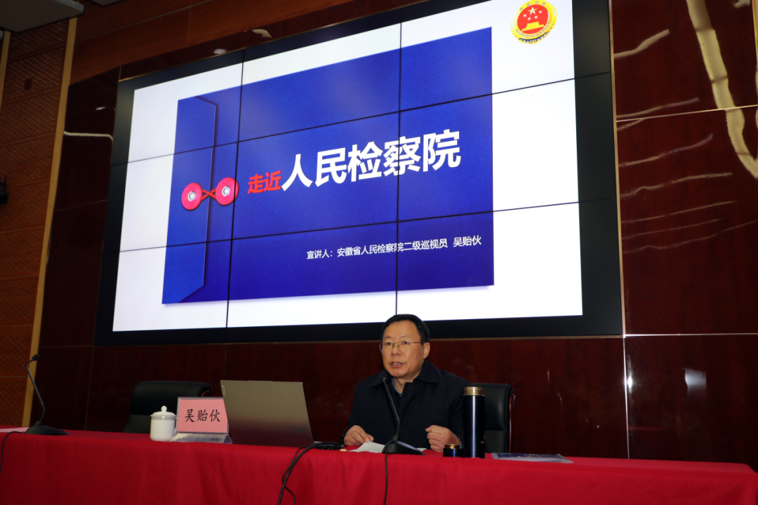 在这两所大学,安徽省检察院二级巡视员吴贻伙以《走进人民检察院》为题,为大学生们作了专场宣介。他生动介绍了人民检察制度的历史沿革、检察机关的职能定位、检察履职的基本格局以及检察队伍状况,同时发出“英雄贴”,就同学们关心的报考检察机关需要具备的条件和渠道,以及检察机关目前紧缺哪些人才等问题做了详细说明。通过深入浅出的讲解,大学生们不仅对检察机关“四大检察”“十大业务”有了一定的了解,也对检察机关的职责任务和使命担当有了初步的认识。