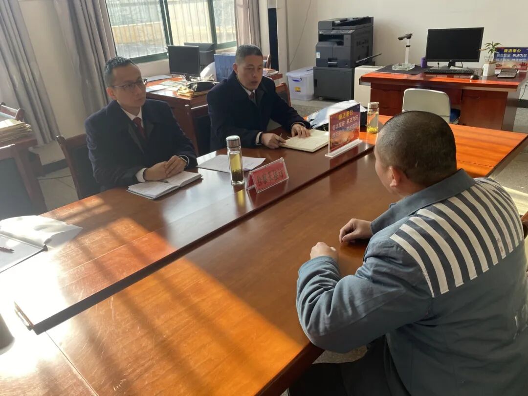 ▲安徽省检察院派出院、九成坂检察院检察长冯伟(左一)与罪犯开展谈话。