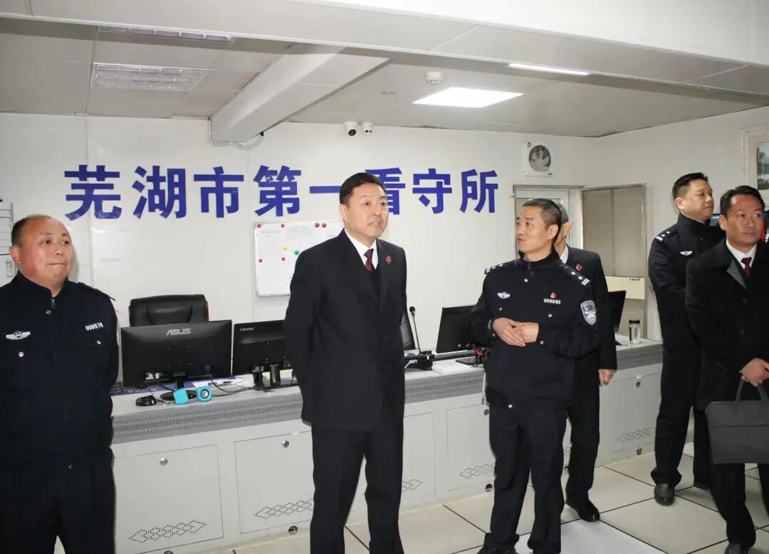 ▲安徽省芜湖市检察院检察长赵昊平(左二)在芜湖市第一看守所实地检察。