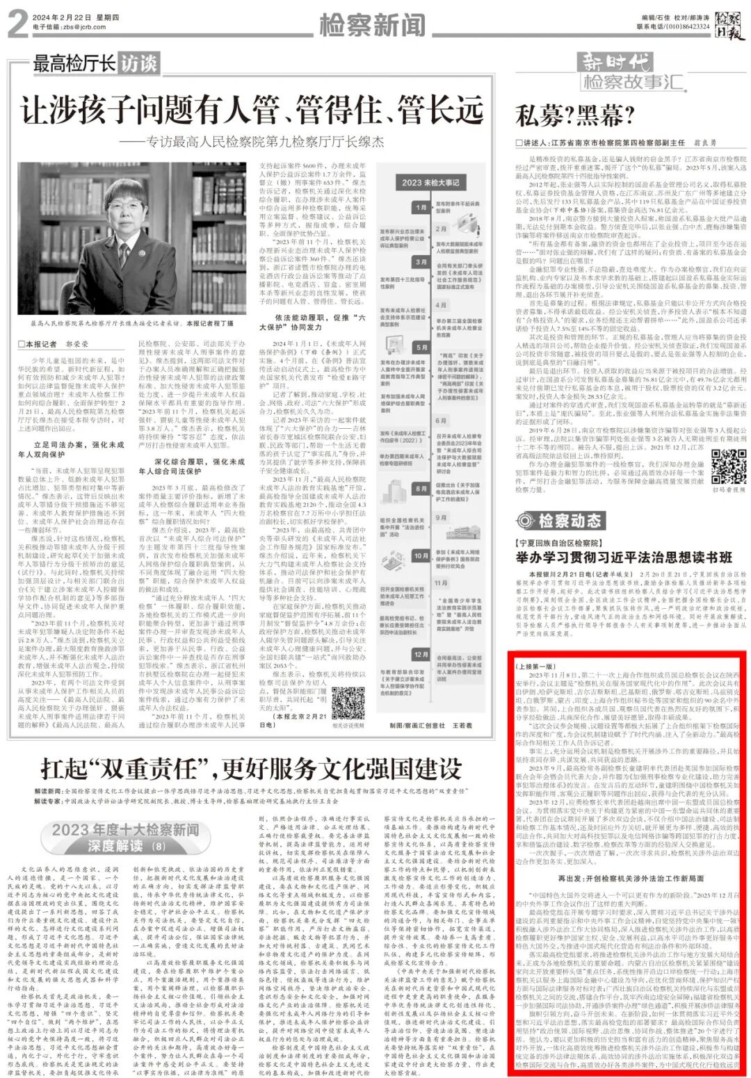 2024年2月22日《检察日报》头版