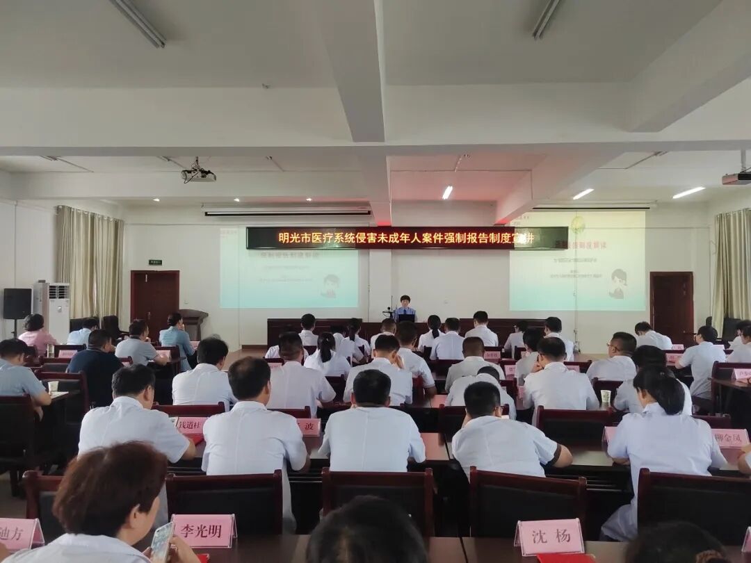 ▲安徽省明光市检察院未检检察官为该市医疗系统工作人员作强制报告制度宣讲。
