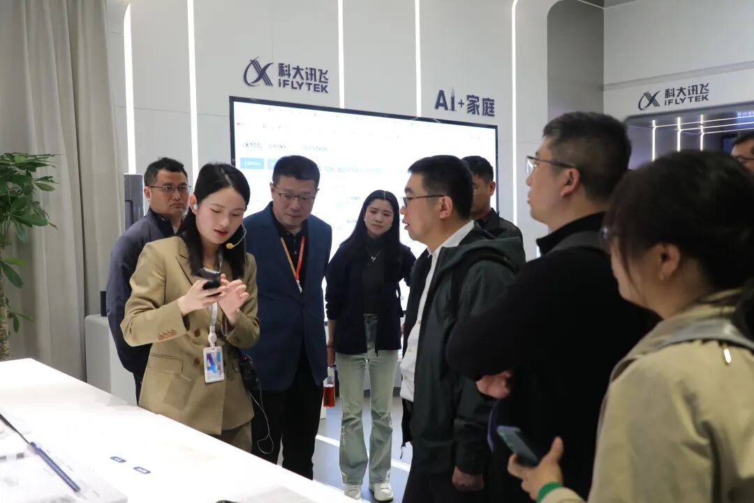 在皖期间,调研组一行还深入科大讯飞合肥总部,参观人工智能展厅,详细了解AI技术和产品研发、星火大模型最新发展以及大模型在法律监督领域的实践应用情况,围绕产品设计理念、在检察机关的应用场景与工作人员进行互动交流。