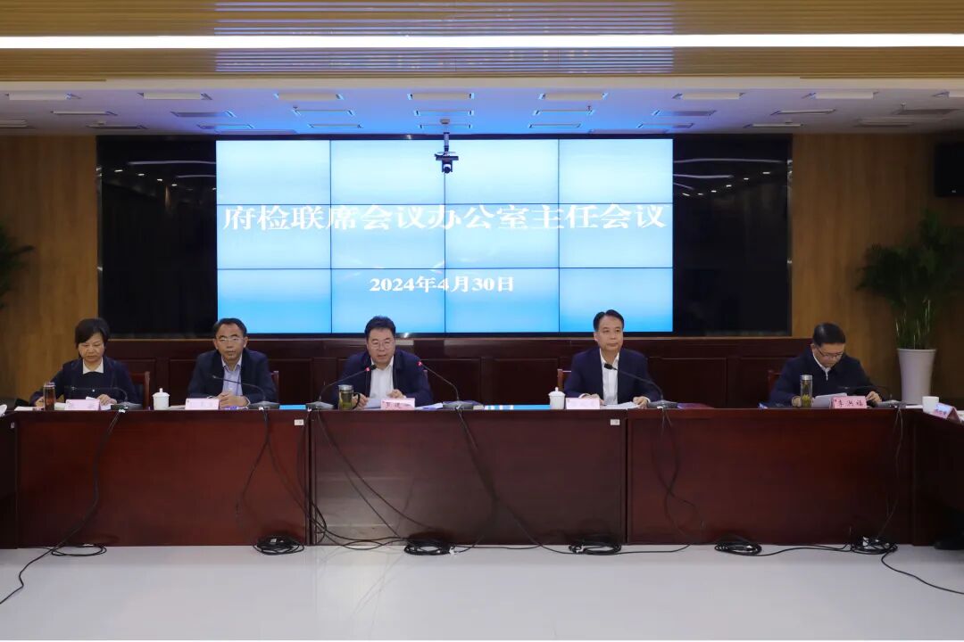 4月30日,省检察院与省司法厅联合召开府检联席会议第三次办公室主任会议,全面总结2023年度“府检联动”工作开展情况,研究部署2024年度重点任务。省司法厅党委书记、厅长、省府检联席会议办公室主任罗建华,省检察院党组副书记、副检察长、省府检联席会议办公室主任盛大友出席会议并讲话。省检察院检委会专职委员、一级高级检察官包来友,省司法厅一级巡视员张敏参加会议并通报相关情况。省司法厅副厅长李洪福主持会议。