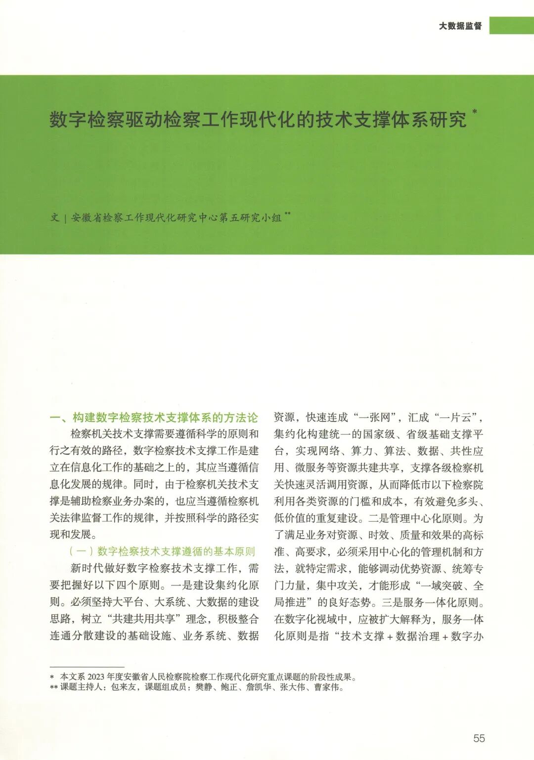 课题组成员:樊静,安徽省人民检察院检察信息技术部主任;鲍正,安徽省人民检察院检察信息技术部四级调研员;詹凯华,安徽省人民检察院检察信息技术部一级主任科员;张大伟,安徽省人民检察院检察信息技术部三级主任科员;曹家伟,安徽省人民检察院检察信息技术部干部。