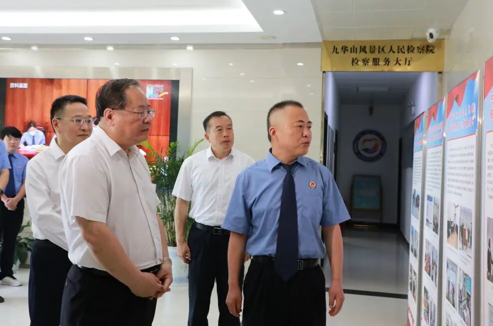 在池州市九华山风景区检察院、石台县检察院,陈武检察长深入了解“检护旅游”、文物及古民居检察公益诉讼保护工作情况。他强调,要积极主动对接池州旅游产业发展需求,延伸检察触角,助力池州旅游业持续健康稳定发展。要坚持打击文物犯罪和保护文物并重,以高质效司法办案,推动文物和文化遗产传承、保护与发展。要从切实维护企业所需、民心所向出发,坚持一体履职、综合履职、能动履职,充分发挥“府检联动”机制作用,加强外部协同,为各类经营主体创新发展营造良好法治环境。