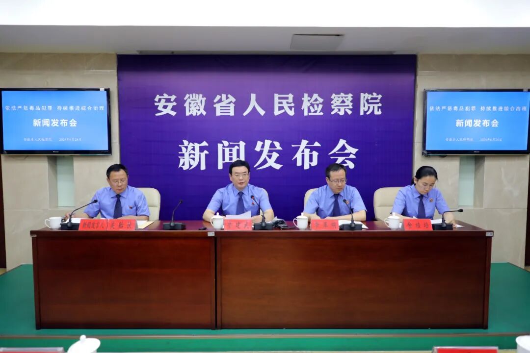 今年6月是我国第14个全民禁毒宣传月。6月24日下午,安徽省检察院召开以“依法严惩毒品犯罪 持续推进综合治理”为主题的新闻发布会,通报全省检察机关开展禁毒工作情况,发布6起相关典型案事例。省检察院党组成员、副检察长鲁建武出席发布会,省检察院第二检察部主任李革明、第九检察部主任余培培参加发布会。省检察院新闻发言人、二级巡视员吴贻伙主持发布会。