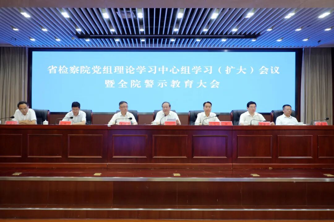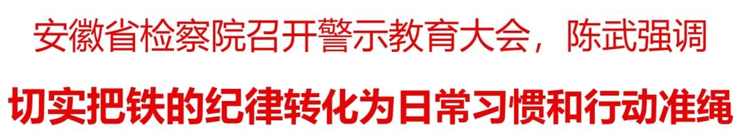 7月15日上午,安徽省检察院召开党组理论学习中心组(扩大)会议暨全院警示教育大会,省检察院党组书记、检察长陈武出席会议并讲话。他强调,要深入学习贯彻习近平总书记关于全面加强党的纪律建设的重要论述,按照中央和最高检、省委关于开展警示教育的要求,以违纪违法案例为镜鉴,用好警示教育这个“醒脑良药”,用身边人身边事身边案敲响“警示钟”,在全方位对照检视中做到知敬畏、存戒惧、守底线,切实把铁的纪律转化为日常行为习惯和行动准绳。省检察院党组副书记、副检察长盛大友主持会议。