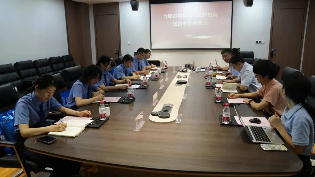 ▲近日,合肥市瑶海区检察院检察官应邀走进某环境科技股份有限公司,以走访+座谈+讲座”的形式服务企业。