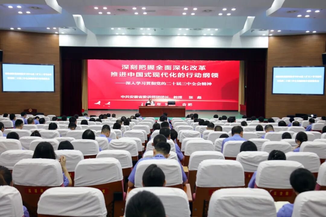 安徽省检察院党组成员、副检察长鲁建武主持党组理论学习中心组学习(扩大)会议暨党的二十届三中全会精神宣讲报告会。省委讲师团团长张彪应邀作宣讲报告。