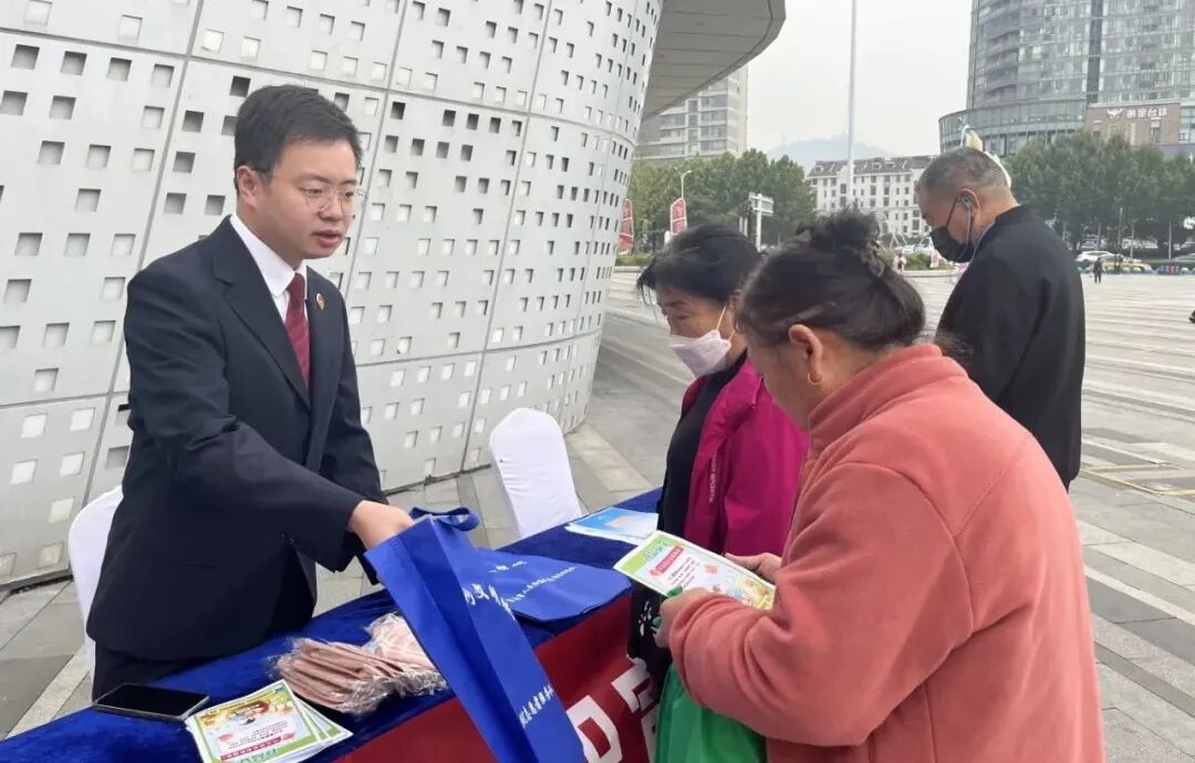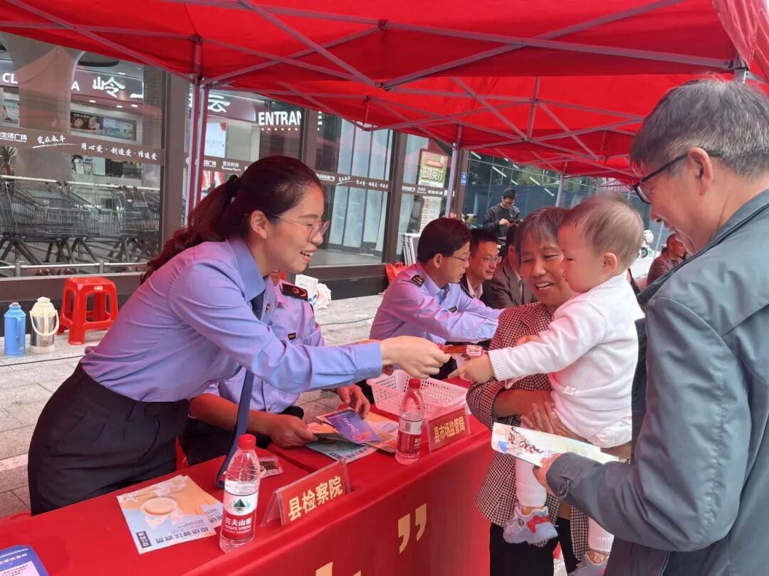 10月22日,黄山市黄山区检察院联合多部门在中通广场开展以“诚信尚俭 共享食安”为主题的食品安全宣传周活动。活动现场,检察干警通过设置咨询台、发放宣传资料等方式,向过往群众介绍食品安全相关法律法规、食品安全标准及食品生产、销售中的违法犯罪行为等知识,提升群众的法律意识和自我保护能力。
