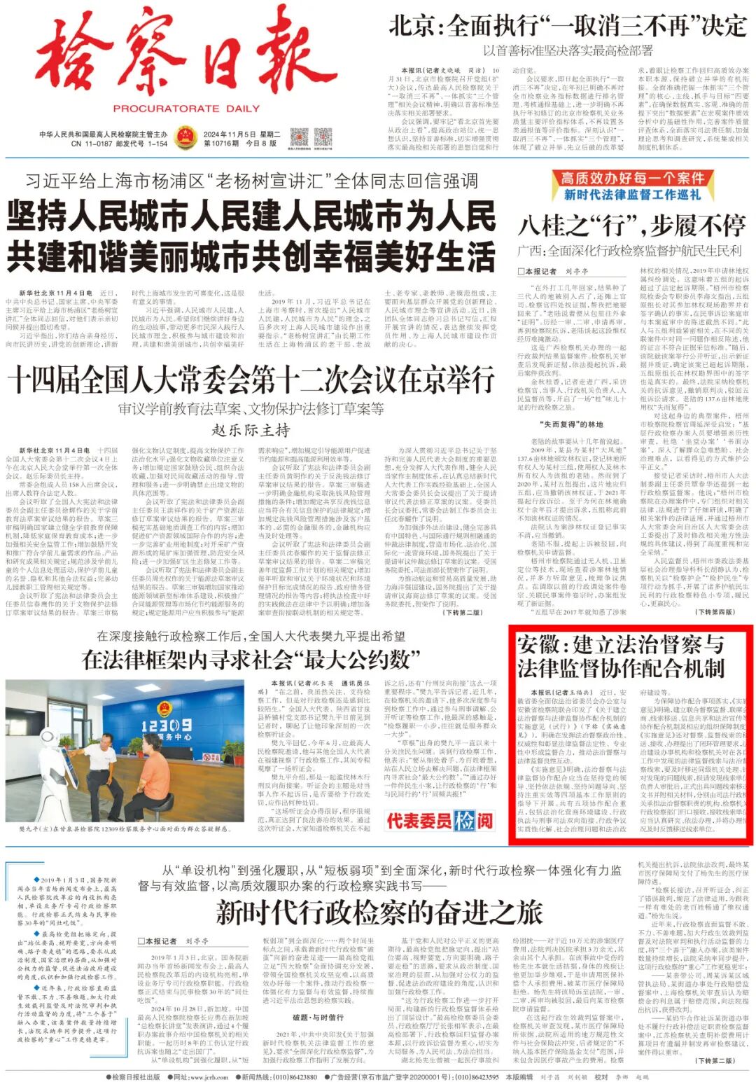 近日,安徽省委全面依法治省委员会办公室与安徽省检察院联合印发了《关于建立法治督察与法律监督协作配合机制的实施意见(试行)》(下称《实施意见》),明确在发挥法治督察政治性、权威性和彰显法律监督法定性、专业性中形成监督合力,推动法治督察与法律监督良性互动。
