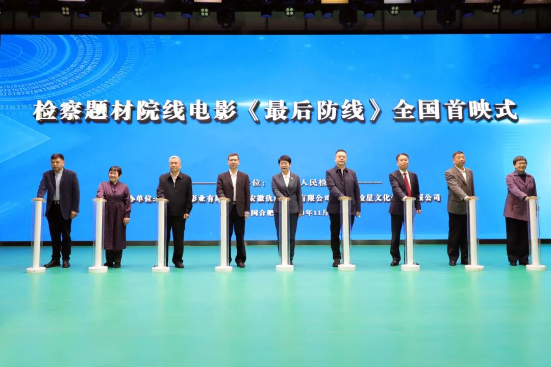 11月7日上午,全国首部反映刑事执行检察工作的院线电影《最后防线》首映式在安徽省人民检察院举行。安徽省人民检察院党组书记、代理检察长宋文娟,省委政法委常务副书记董桂文等领导出席首映式并共同开启影片首映按钮。最高人民检察院新闻办公室副主任丁海东,安徽省检察院党组副书记、副检察长盛大友分别致辞。