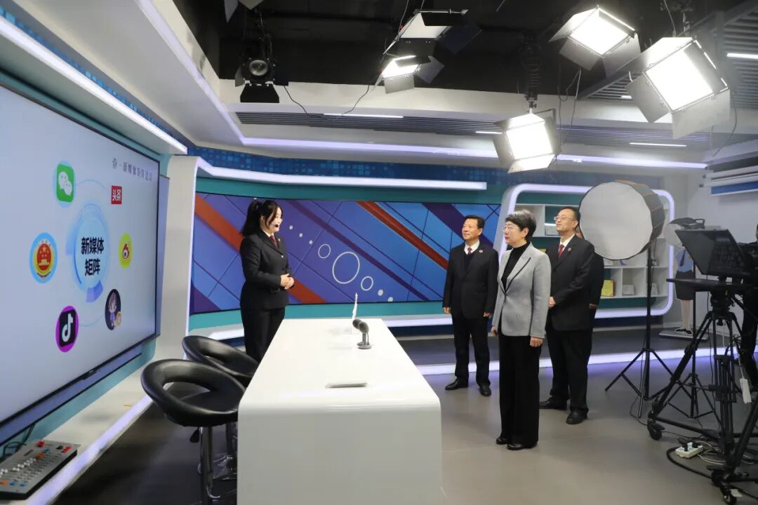 ▲省检察院调研组参观马鞍山市花山区检察院融媒体中心。