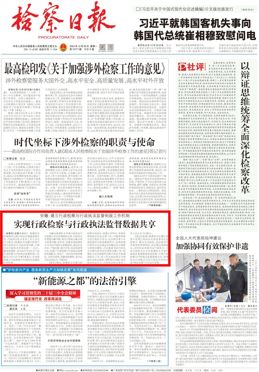 检察机关在办理案件过程中依法开展调查核实工作,行政执法机关及其工作人员应当予以配合;检察机关在履行职责中发现行政执法行为违法等问题,可移送司法行政机关审查处理……近日,安徽省检察院、省司法厅印发《关于加强行政检察与行政执法监督衔接工作的意见(试行)》(下称《意见》),在省级层面建立行政检察与行政执法监督衔接工作机制。