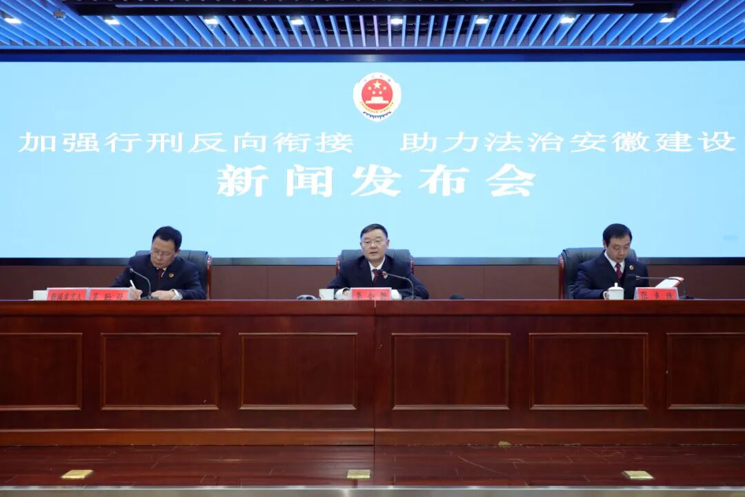 1月10日,省检察院召开以“加强行刑反向衔接 助力法治安徽建设”为主题的新闻发布会,通报全省检察机关开展行刑反向衔接工作情况,发布第一批行刑反向衔接典型案例,并回答记者提问。省检察院检察委员会专职委员李令新出席发布会并作相关通报。省检察院新闻发言人、二级巡视员吴贻伙主持发布会。