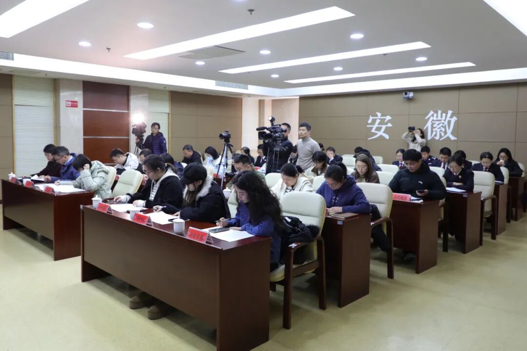 安徽省检察院相关内设机构负责人参加发布会。中央驻皖以及安徽省主要新闻单位的记者出席发布会。