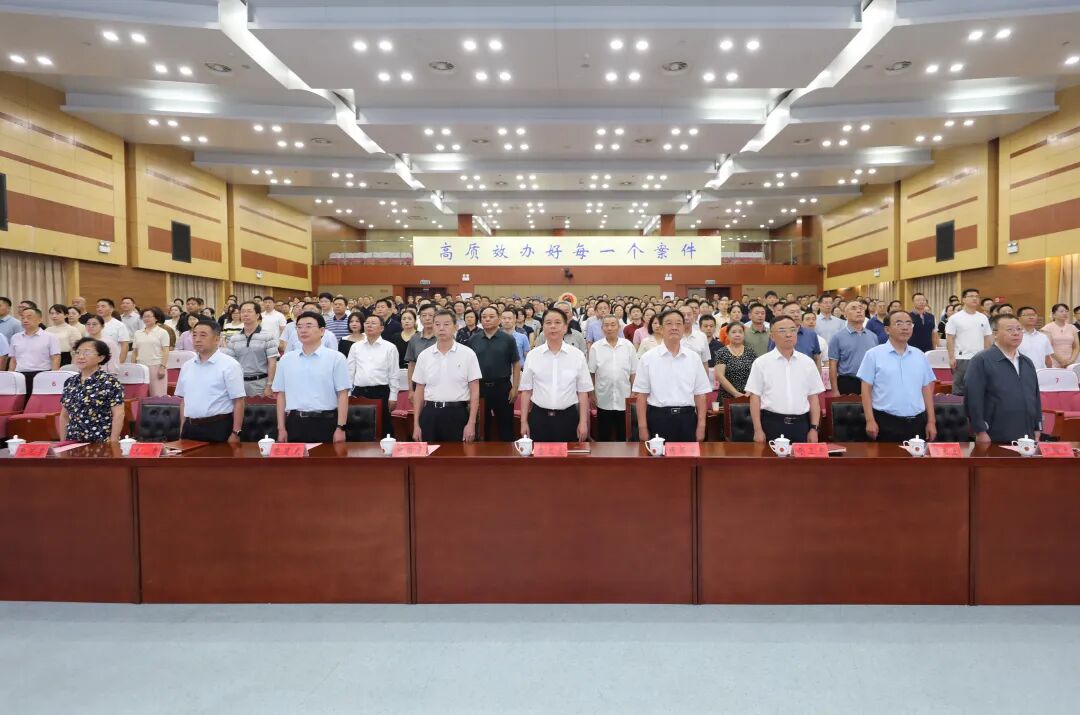 安徽省检察院机关干警全体起立齐声高唱中华人民共和国国歌。