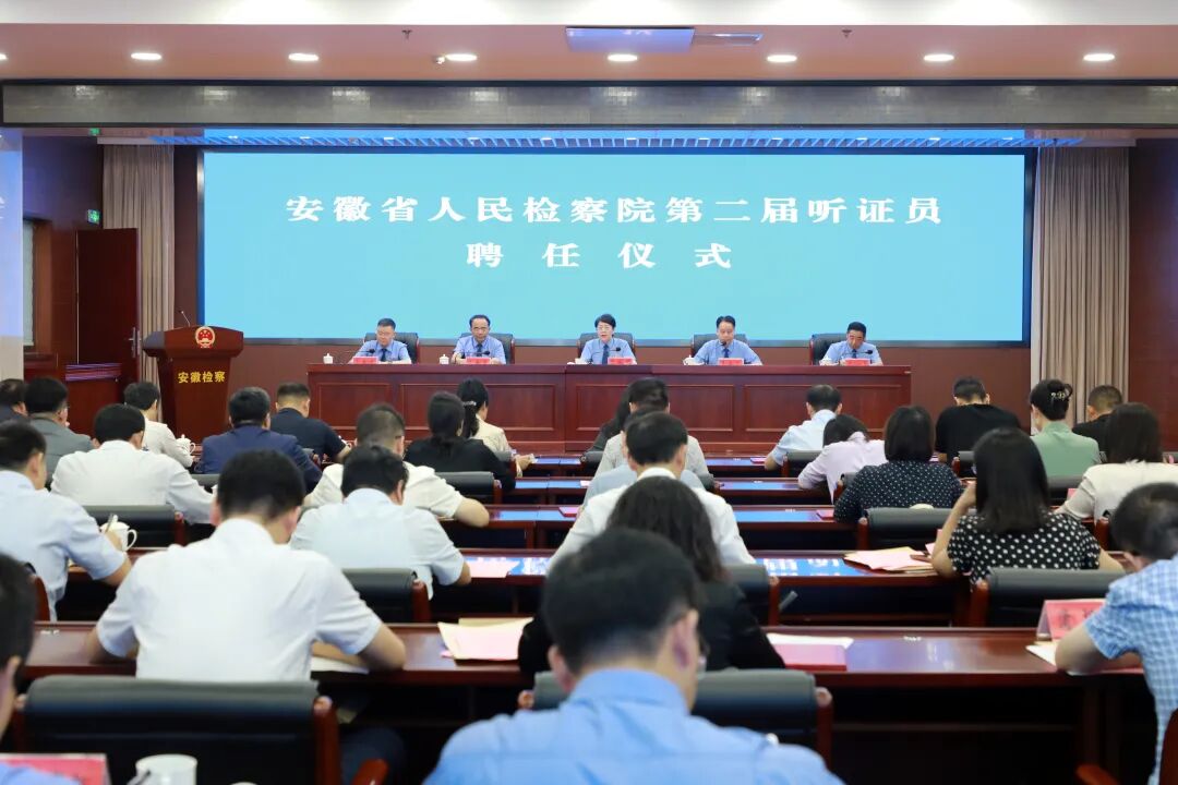 9月19日上午,安徽省检察院举行第二届听证员聘任仪式。省检察院党组书记、检察长宋文娟出席并讲话。省检察院党组副书记、副检察长盛大友主持聘任仪式。