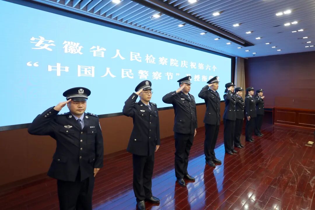 为迎接第六个“中国人民警察节”,持续增强司法警察队伍的职业荣誉感、归属感和队伍凝聚力,1月8日上午,安徽省检察院举办庆祝活动,为司法警察授衔,组织新入警司法警察宣誓,并邀请老中青司法警察代表座谈交流。安徽省检察院党组成员、副检察长刘曙光出席活动并讲话。
