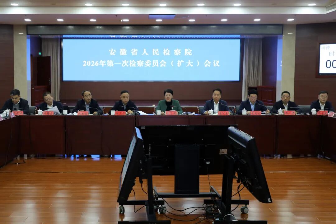 1月15日,安徽省检察院召开2026年第一次检委会(扩大)会议,专题分析研判会商2025年全省检察机关办案质效。省检察院党组书记、检察长宋文娟主持会议并讲话。