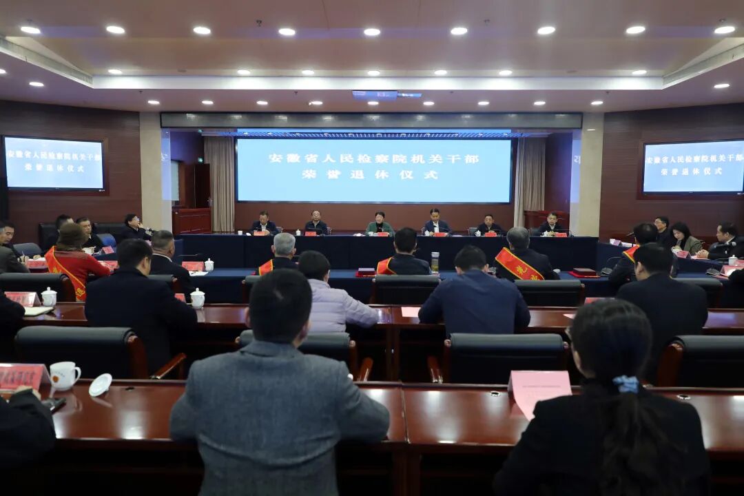 仪式上,参会人员集体观看了荣誉退休专题片,省检察院领导为退休干部颁发了荣誉纪念章、感谢信和证书,黄慧平、赵杰、温诚、杨旭春等退休干部先后分享了心路历程,表达了对安徽检察的美好祝愿。