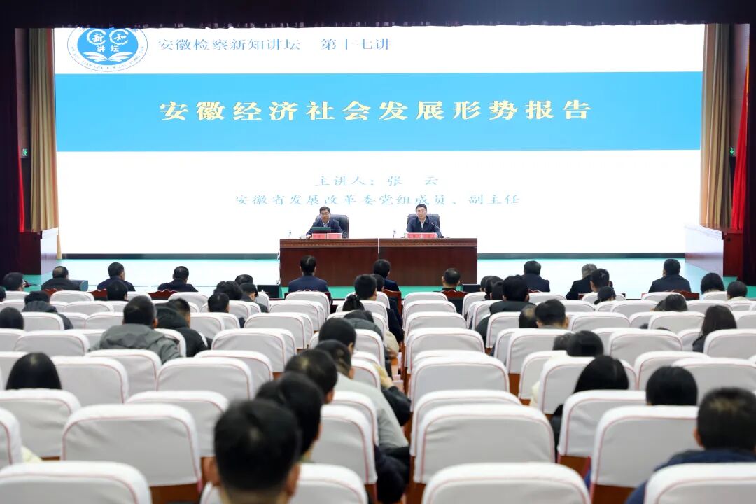 “今年是‘十五五’开局之年,检察机关如何以高质效履职服务良好开局?首要的是了解大局、知悉全局。”近日,安徽省检察院举办“安徽检察新知讲坛”新年第一讲,邀请安徽省发展和改革委员会副主任张云开展安徽经济社会发展形势专题讲座,该省三级检察院干警以线上线下相结合的方式同步听讲。
